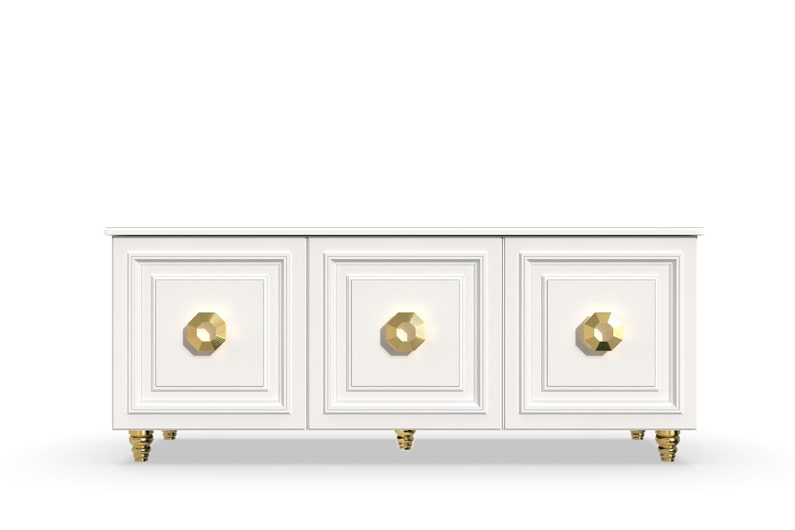 Тумба под телевизор Лозанна имеет четыре просторных ящика для хранения всех необходимых вещей, от приставки до телевизора до дисков с фильмами и играми. Она украшена изящными резными элементами и декоративными ручками, что добавляет шарма и элегантности вашему интерьеру.