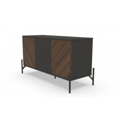 Тумба под ТВ "Шале" от фабрики Geona - это функциональное и элегантное решение для вашей гостиной. Она имеет эффектную отделку в диагональном направлении текстуры, что придает ей неповторимый и стильный вид.
